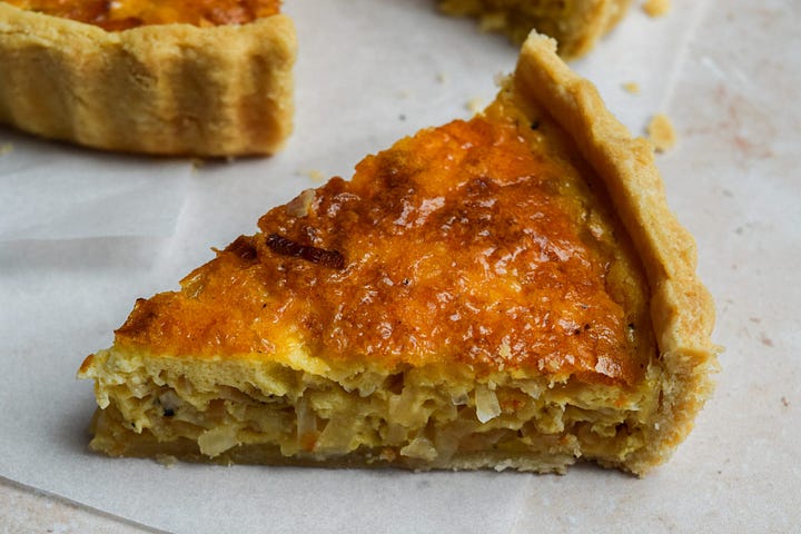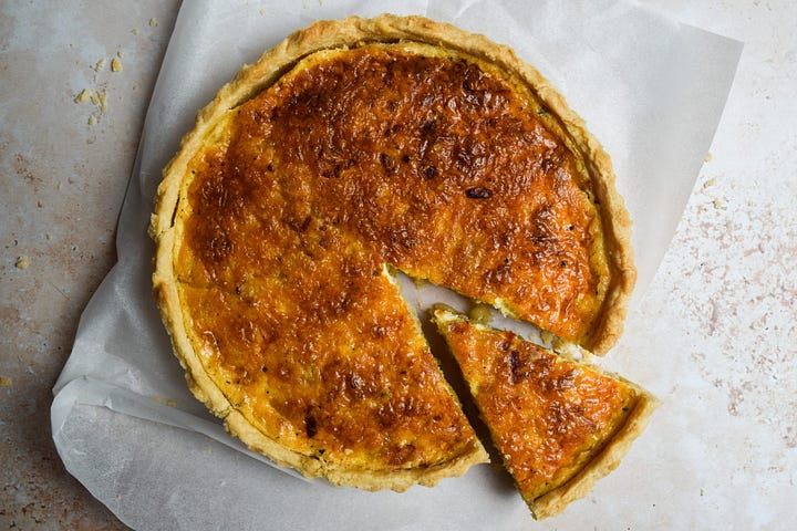 Returning to the pan, if you cook the onions low and slow enough you’ll reach the point where they’re a soft, dark, sticky reduction: caramelised onions. Whilst time consuming, I think are the greatest expression of an onions’s powers. Simmer them slowly with a good stock and you’ve got a classic French onion soup, though I prefer them loaded into a pastry crust for a quiche better suited to these cooler months.