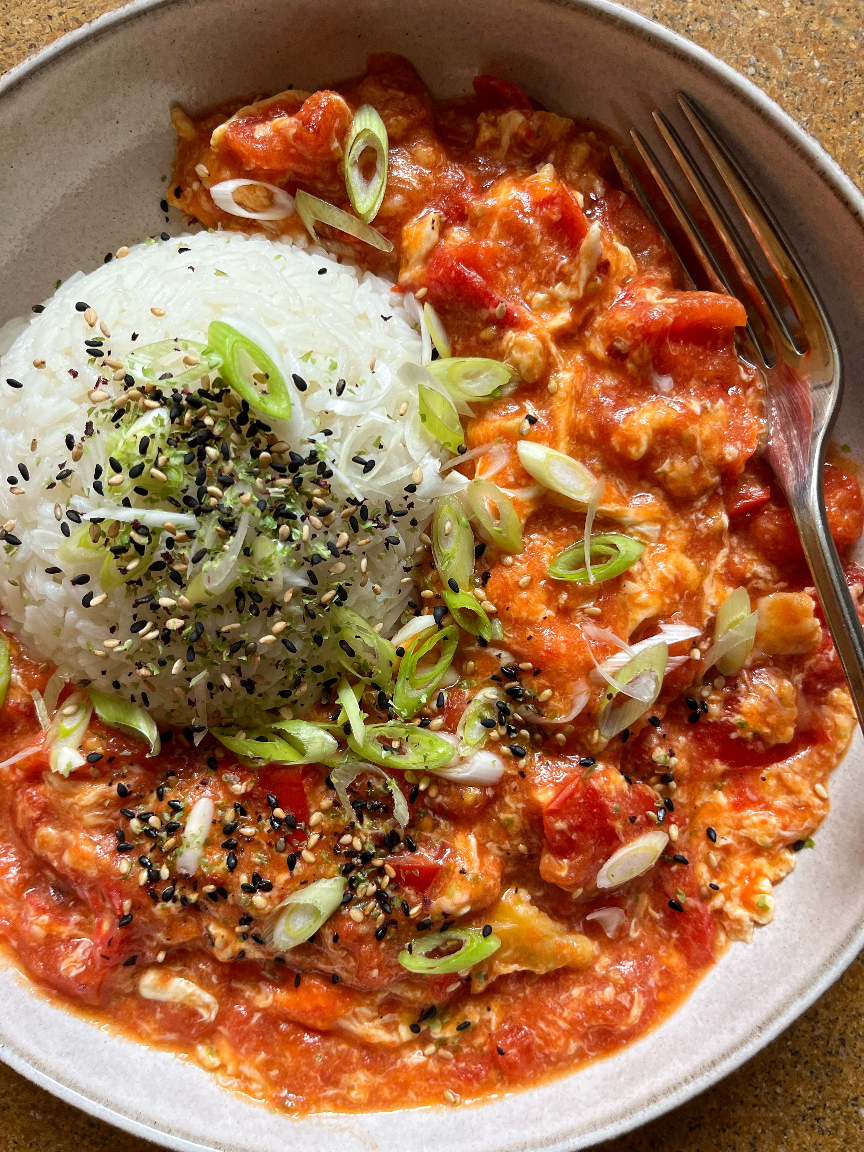 This recipe is the end result from the first evening I first made Chinese Tomato and Egg, initially working to Kristina Cho’s Tomato Egg recipe on her website (which she’s tweaked slightly for her fantastic book Chinese Enough!)